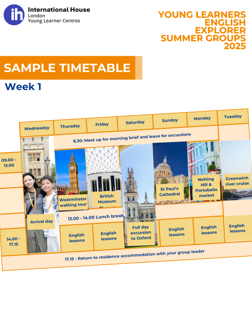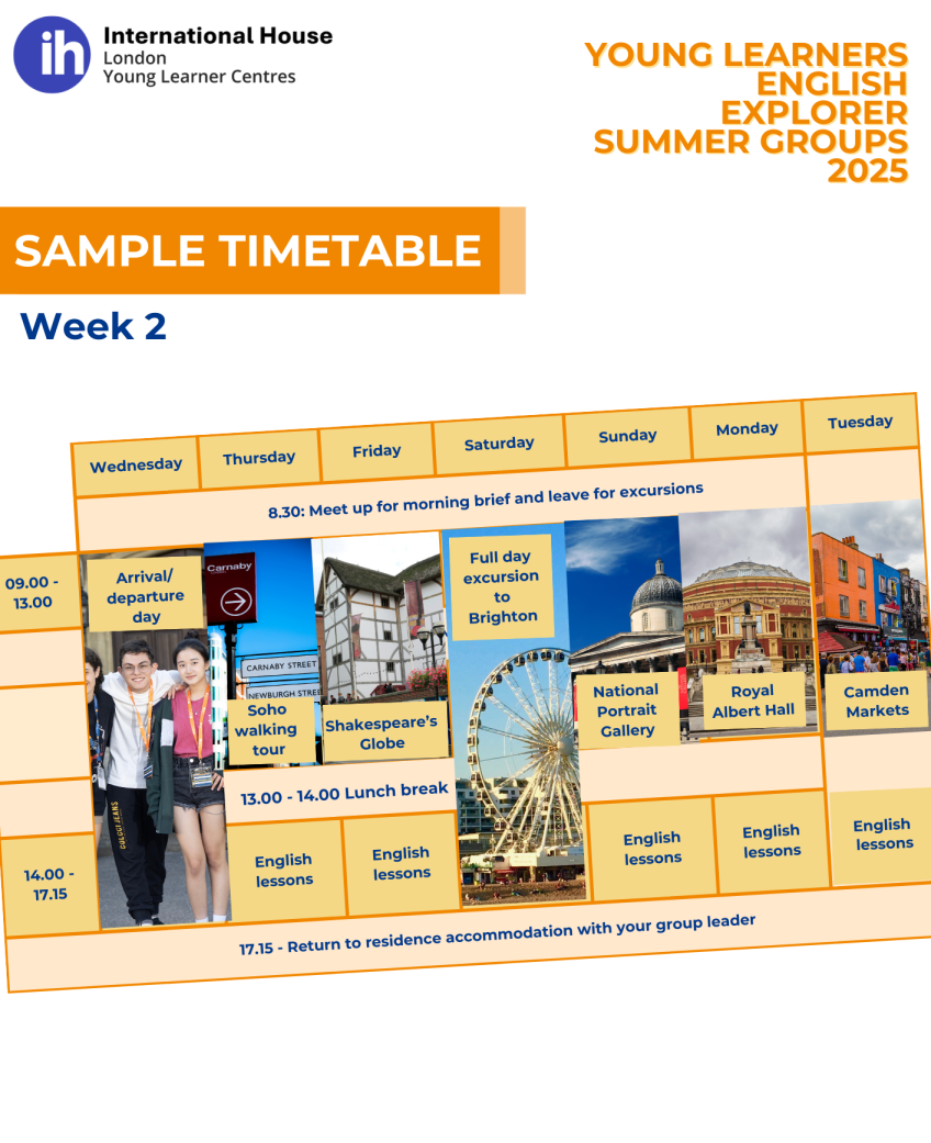 📆 ตัวอย่างตารางกิจกรรมในคอร์สเรียนภาคฤดูร้อนจาก IH London