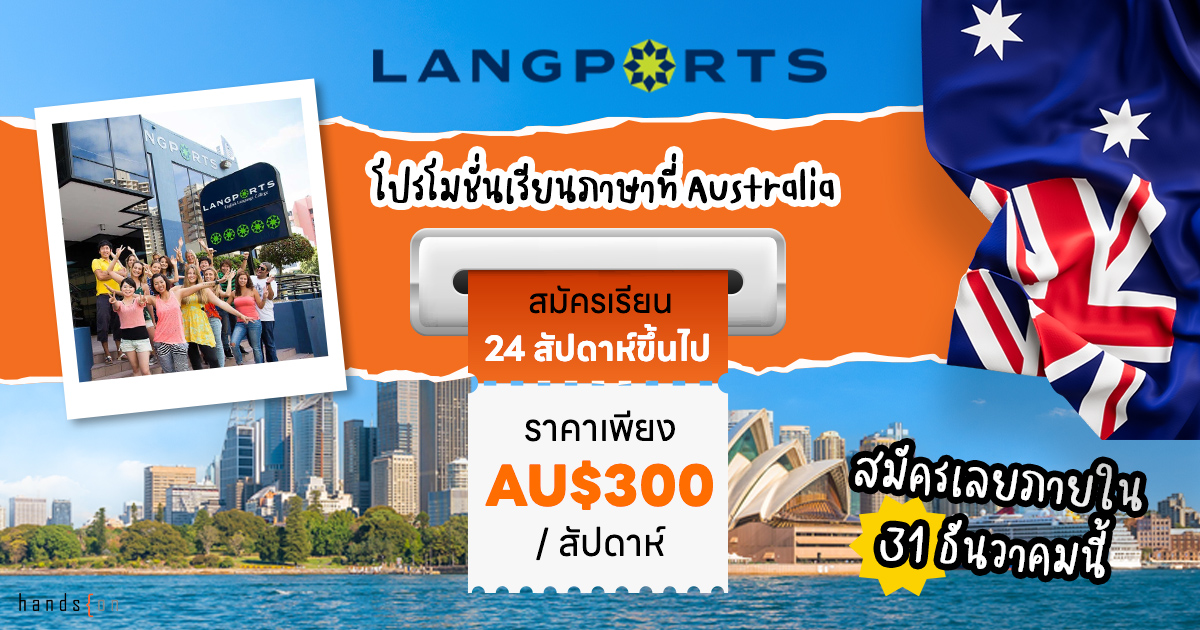 สถาบัน Langports มีโปรโมชั่นพิเศษสำหรับน้อง ๆ นักเรียนไทยที่ถือวีซ่า Working Holiday หรือวีซ่านักท่องเที่ยว ที่มีอายุ 18 ปีขึ้นไปที่สมัครเรียนหลักสูตรเต็มเวลา ภายในวันที่ 31 ธันวาคม 2568 และรับสิทธิพิเศษดังนี้