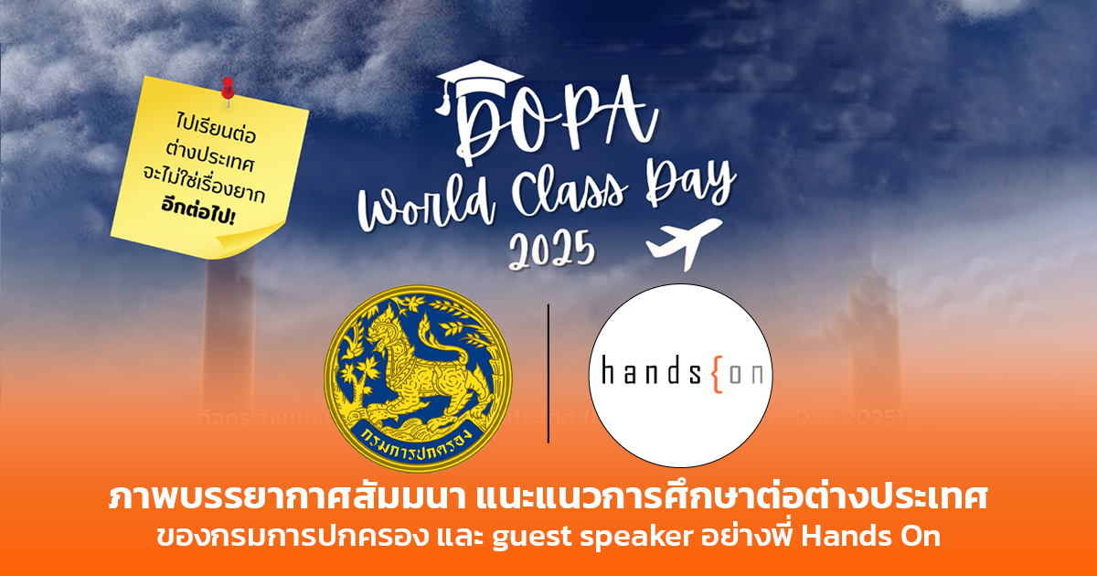 เมื่อวันพุธที่ 6 พฤศจิกายน 2568 ที่ผ่านมา Hands On Education Consultants ได้การรับเชิญจากกรมการปกครอง เพื่อร่วมเป็นวิทยากรพิเศษในกิจกรรมแนะแนวทางการศึกษาต่อต่างประเทศสำหรับบุคลากรกรมการปกครอง ผ่านแอปพลิเคชัน Zoom ในหัวข้อ “วางแผนเส้นทางการเรียนต่ออย่างมีวิสัยทัศน์ เลือกสาขาและมหาวิทยาลัยที่ใช่ พร้อมกลยุทธ์คว้า Offer อย่างมั่นใจ”