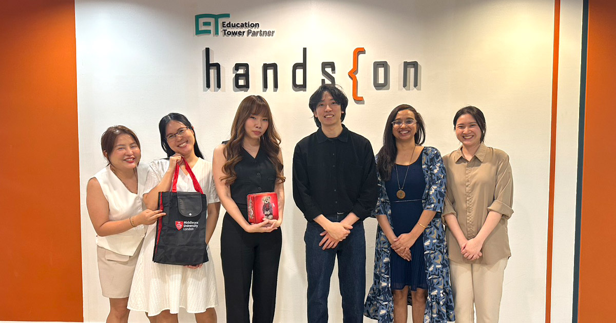 คุณ Magnus Au เจ้าหน้าที่ Recruitment Manager and Marketing Officer (Asia Pacific Regional Hub) จาก Middlesex University London มหาวิทยาลัยชั้นนำจากสหราชอาณาจักร ได้เดินทางมาเยี่ยมเยียนพี่ ๆ Hands On ที่ออฟฟิศสาขาสีลม (สำนักงานใหญ่) ในฐานะตัวแทนมหาวิทยาลัยอย่างเป็นทางการประจำประเทศไทย