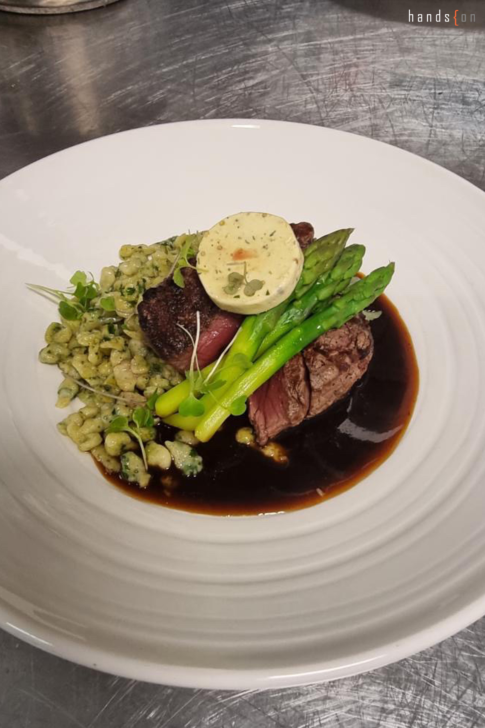 Pae: ผมเรียนจบประวัติศาสตร์มาครับ แต่ว่าช่วงปี 4 มันมีเวลาว่าง ไม่เชิง gap year คือมันค่อนข้างว่างแล้วตอนนั้นผมทำวิทยานิพนธ์อยู่ ผมก็เลยไปหาอะไรเรียน แล้วผมรู้สึกว่าผมชอบทำอาหาร ผมก็เลยไปเรียนที่สวนดุสิตครับ พอเรียนจบที่สวนดุสิตปุ๊บ มันมีโครงการ intern 1 ปี ที่อเมริกา แล้วพอดีผมลองไปสอบ ลองไปทำอาหารให้เชฟที่เค้าบินมาจากอเมริกาให้เค้าดู แล้วผมได้รับโอกาสที่จะไปทำ intern 1 ปี ที่อเมริกาครับ ก็เลยลองไป แล้วก็รู้สึกว่าผมชอบ พอกลับมาจากที่อเมริกาผมก็รู้สึกว่าผมไม่อยากทำงานที่ออฟฟิศ ผมก็เลยหาอะไรทำที่เป็นสายนี้ อย่างช่วงโควิดผมก็ทำงานเป็นบาร์เทนเดอร์ แล้วก็ part-time ที่ร้านอาหารบ้าง แต่ก็รู้สึกว่าเงินที่มันได้ที่เมืองไทยมันน้อยมาก ๆ สำหรับสายอาหาร ก็เลยลองหาทางดู ทางไหนบ้างที่ไม่ใช่อเมริกา เพราะผมไปอเมริกามาหลายรอบแล้ว เบื่อแล้ว พอ Hands On แนะนำมา ผมก็เลยลองมาดูครับ