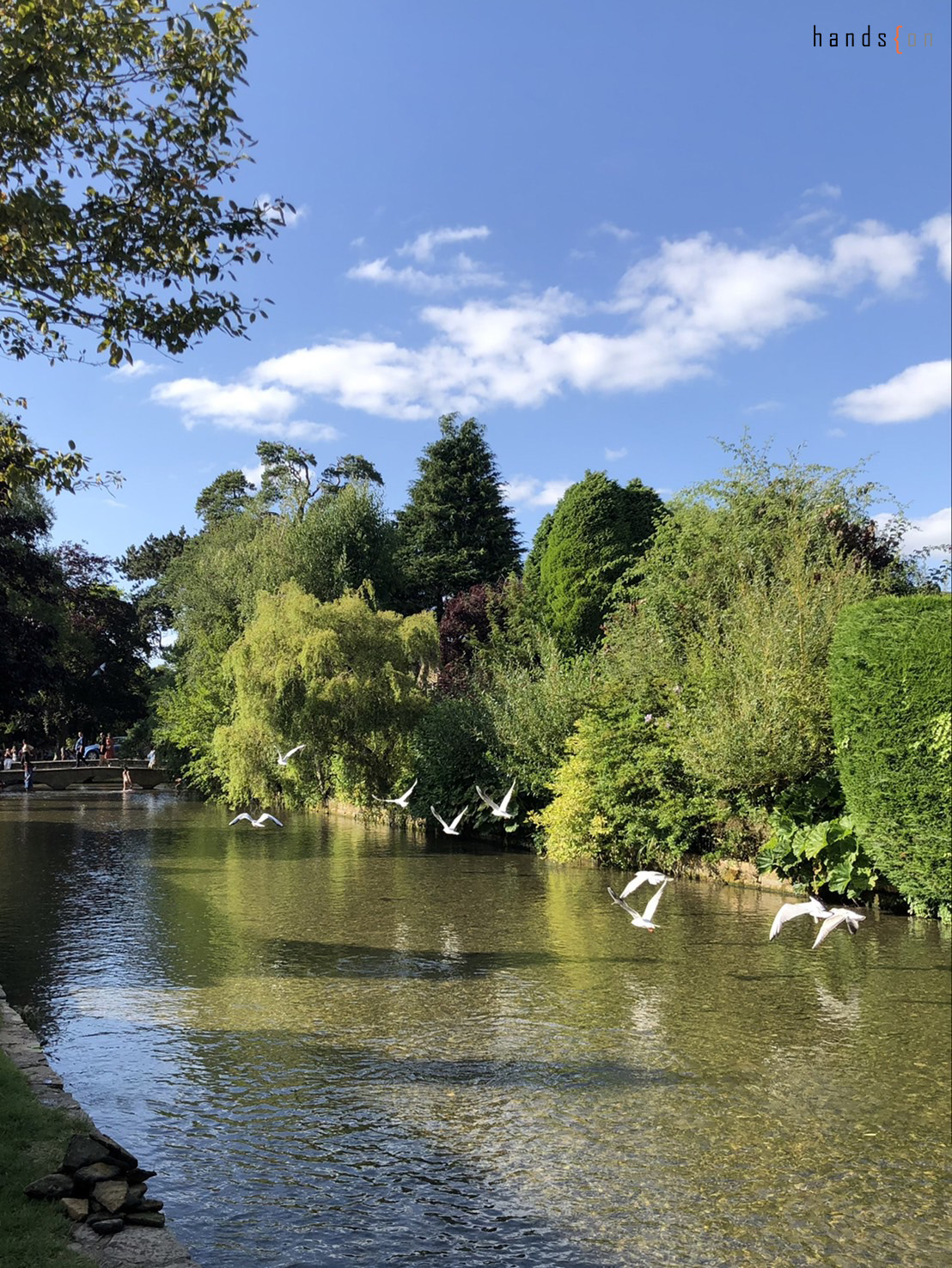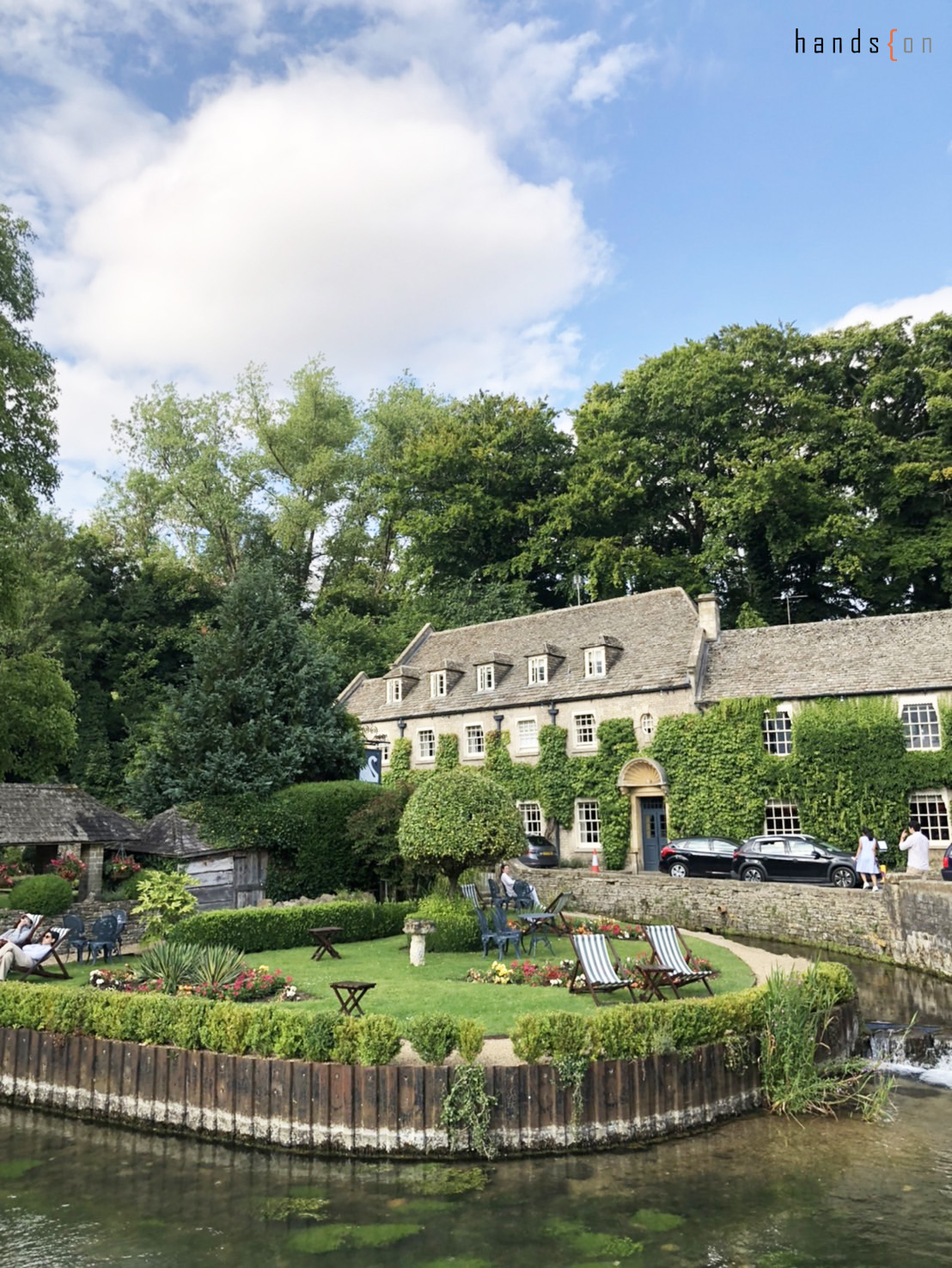 อีกที่นึงที่เป็นหนึ่งในจุดที่เป็นนิยมที่สุดใน Cotswolds ก็คือหมู่บ้าน Bourton-on-the-Water เป็นหมู่บ้านที่มีแม่น้ำเล็กชื่อว่า River Windrush ไหลผ่านใจกลางหมู่บ้านทั้งหมู่บ้านเลย เราไปตอนหน้าร้อนพอดี คนเลยเยอะมาก ๆ ตรงริมน้ำผู้คนมักจะไปนั่งห้อยขากัน เด็ก ๆ บางคนก็ลงไปเล่นน้ำเลย ที่นี่จะมีที่เที่ยวและที่ให้เดินเล่นเยอะมาก ๆ ที่พัก ร้านอาหาร ร้านขายของที่ระลึก แล้วก็สวน เช่น สวน Birdland Park and Gardens ที่เป็นสวนนกมีทั้งฟลามิงโกและนกอื่น ๆ อีกเยอะเลย มี Model Village ที่เป็นการจำลองหมู่บ้าน Bourton-on-the-Water ทั้งหมู่บ้านให้อยู่ในหมู่บ้านโมเดลจิ๋ว มี Cotswold Motoring Museum จัดแสดงพวกรถวินเทจต่าง ๆ ตอนเราไปคนเยอะมาก ๆ เลยไม่ได้มีโอกาสเข้า เลยแค่เดินเล่นในหมู่บ้านเฉย ๆ