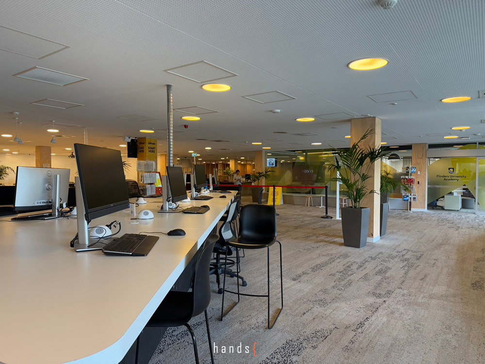 เรียกได้ว่าเป็น “Home of Engineering, IT, Computer Science, Maths and Defence” ของมหาวิทยาลัย Flinders ค่ะ อีกทั้งยังเป็นสถาบันวิจัยอุปกรณ์การแพทย์ หรือ Medical Device Research Institute (MDRI) ถูกสร้างขึ้นบนพื้นที่ศูนย์การผลิตเก่าของ มิตซูบิชิ มอเตอร์ส ด้วยมูลค่ากว่า 120 ล้านดอลล่าร์ออสเตรเลีย ล้อมรอบไปด้วยธุรกิจและองค์กรที่เป็นที่รู้จักทั่วโลก ไม่ว่าจะเป็น BAE, SAGE, Siemens, ZEISS, SIMEC ZEN Energy, Tesla, Micro-X, Rockwell Automation เป็นต้น น้อง ๆ ที่เรียนหลักสูตรปริญญาตรี Engineering หรือ IT สามารถเลือกฝึกงานได้ถึง 20 สัปดาห์ ต้องบอกเลยว่า Flinders University เป็นมหาวิทยาลัยที่ให้นักศึกษาได้ฝึกงานเป็นเวลานานที่สุดในออสเตรเลีย เป็นแคมปัสที่พี่แอบร้องว้าวอยู่ในใจหลายครั้งเลยค่ะ สำหรับการเดินทางไป CBD ก็ง่ายนิดเดียว นั่งรถไฟเพียง 20 นาที สะดวกมาก ๆ ค่ะ