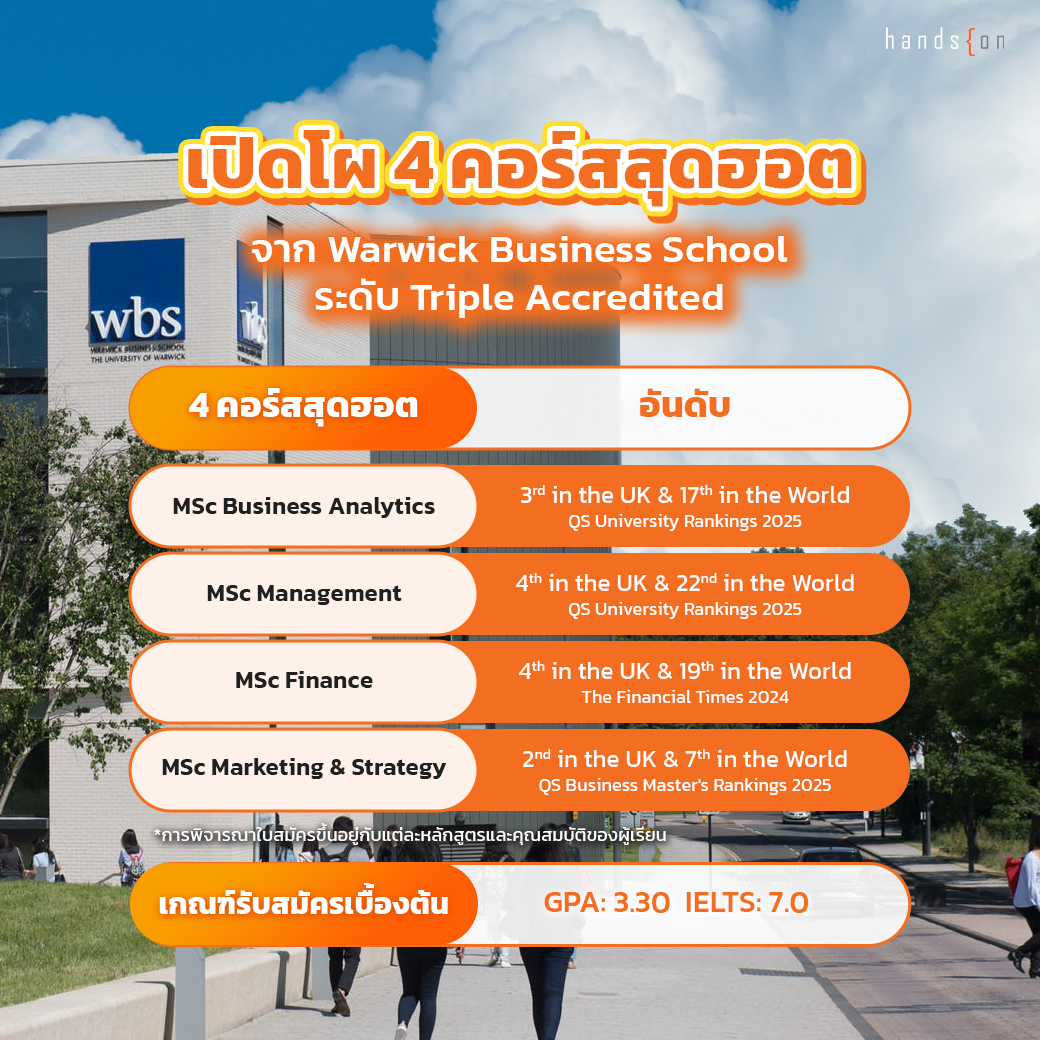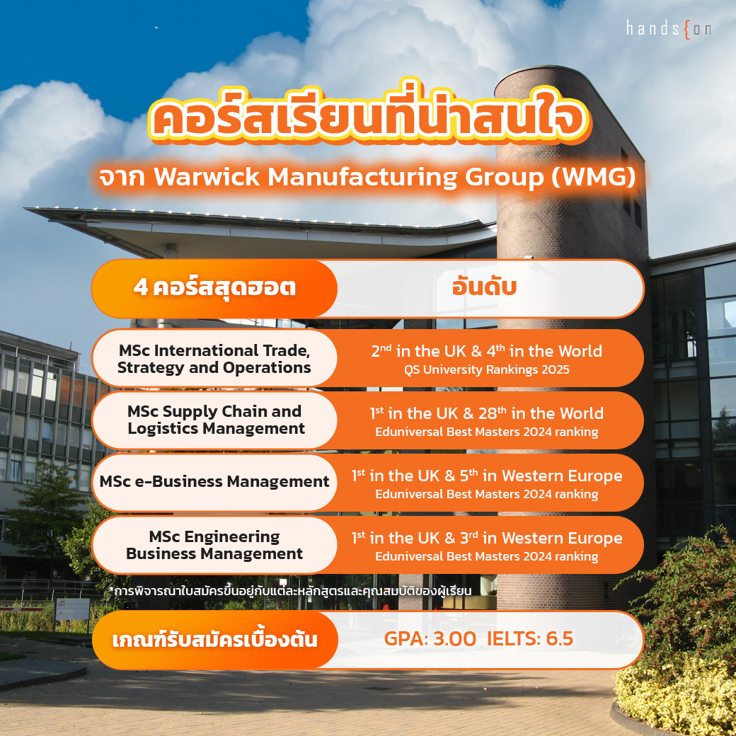 หากน้อง ๆ อยากวางแผนการทำงานในอนาคต การเลือกคอร์สเรียนที่ได้ทั้งคุณภาพและชื่อเสียงของมหาวิทยาลัย นับเป็นทางเลือกที่ถูกต้อง และจะช่วยให้โปรไฟล์ CV ของเราน่าสนใจมายิ่งขึ้น กับ HR ของบริษัทชั้นนำมากยิ่งขึ้น ยิ่งเป็น University of Warwick ด้วยแล้ว บริษัทต่างชาติยิ่งให้ความสนใจ