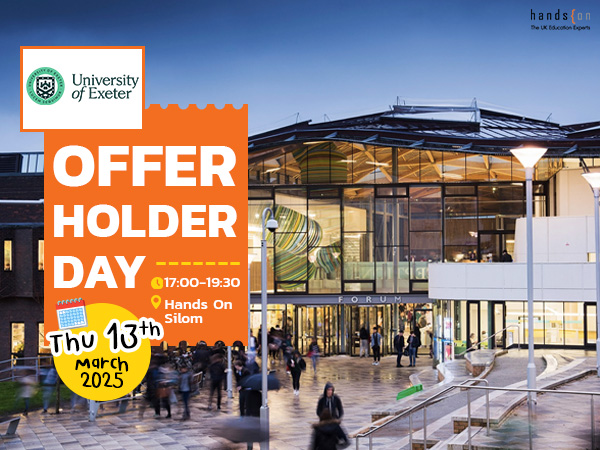 For those who want to study at one of the top universities in the world, don’t miss this “ University of Exeter Offer Holder Day“, hosted by Hands On and University of Exeter. This event is an opportunity to meet with Rose Huber, the International Officer – South East Asia and Sineeporn Chillanond the university officer and University of Exeter alumni, to find out more about your study plan and options.