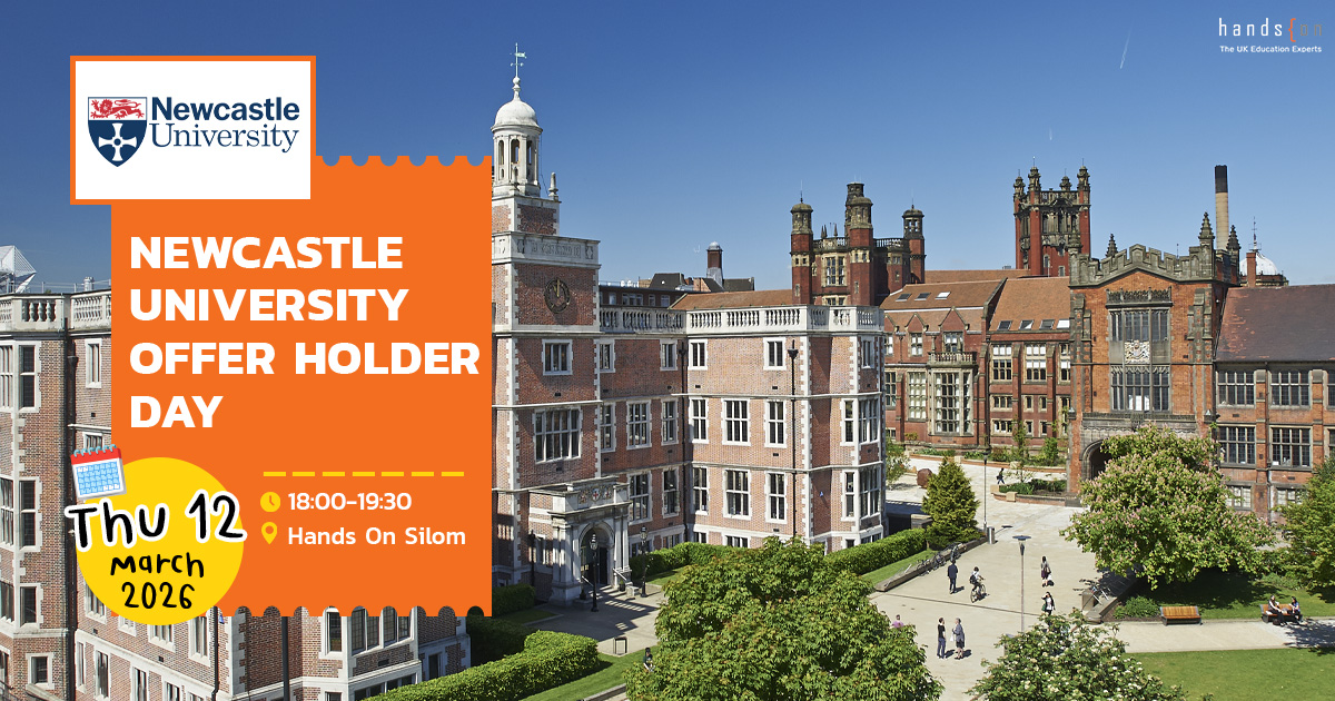 สำหรับคนที่กำลังวางแผนไปเรียนต่อในมหาวิทยาลัยระดับท็อปของ UK พี่ Hands On ได้จัดกิจกรรม Newcastle University Offer Holder Day เพื่อเปิดโอกาสให้น้อง ๆ พบกับเจ้าหน้าที่จาก Newcastle University มหาวิทยาลัยชั้นนำสมาชิกกลุ่ม Russell Group ที่มีชื่อเสียงด้านงานวิจัยและคุณภาพการสอนระดับแนวหน้า ภายในงาน น้อง ๆ จะได้รับข้อมูลเกี่ยวกับมหาวิทยาลัย คอร์สเรียน การสมัครเรียน ชีวิตของนักศึกษาในเมือง และทุนการศึกษา ในงานนี้จะมีข้อมูลทุนปี 2026 มาอัปเดตให้ พร้อมเทคนิคการชิงทุนจากเจ้าหน้าที่มหาวิทยาลัยแบบตัวต่อตัว สุดท้ายนี้พี่ Karnteera รุ่นพี่ศิษย์เก่าไทยมาแชร์ประสบการณ์ตรงการเรียนต่อ Newcastle University อีกด้วย