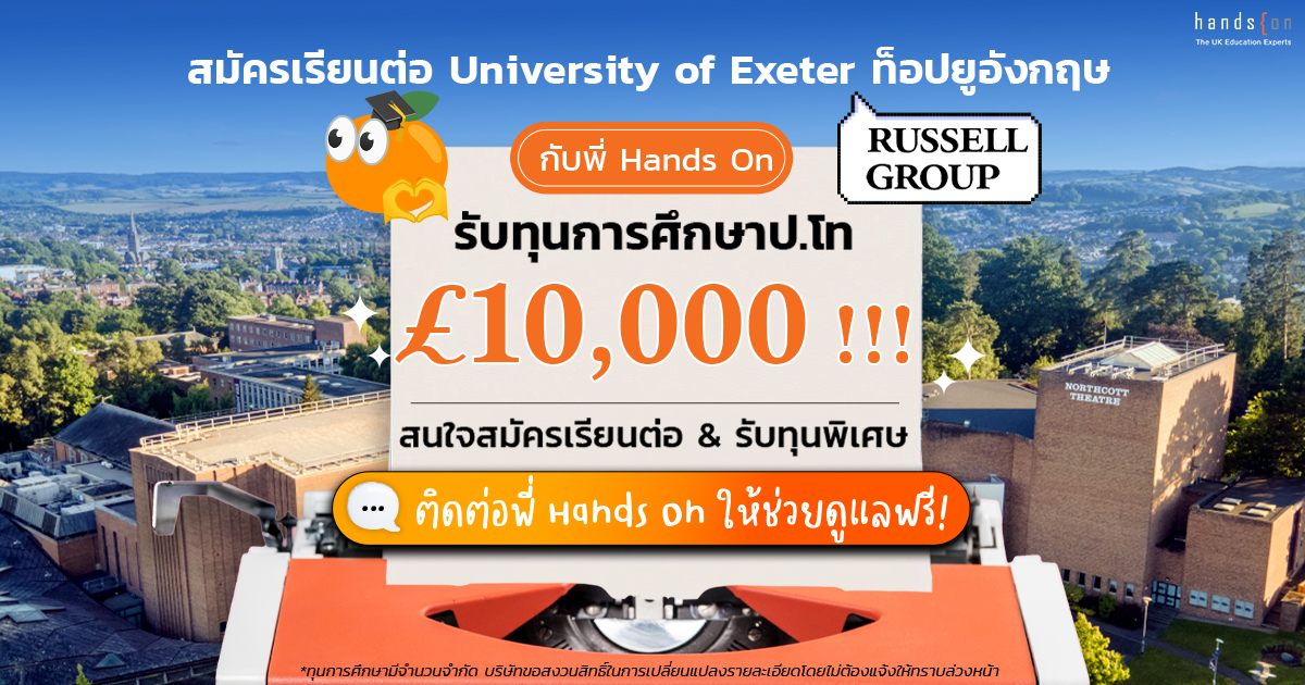 พิเศษ! University of Exeter มอบทุนการศึกษาสำหรับน้อง ๆ ที่สมัครเรียนต่อ ป.โท ผ่านบริการของพี่ Hands On ตามรายละเอียดด้านล่าง