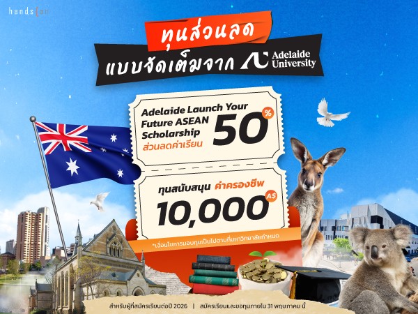 ทุนส่วนลดแบบจัดเต็ม Adelaide Launch Your Future ASEAN Scholarship (50%) จาก Adelaide University